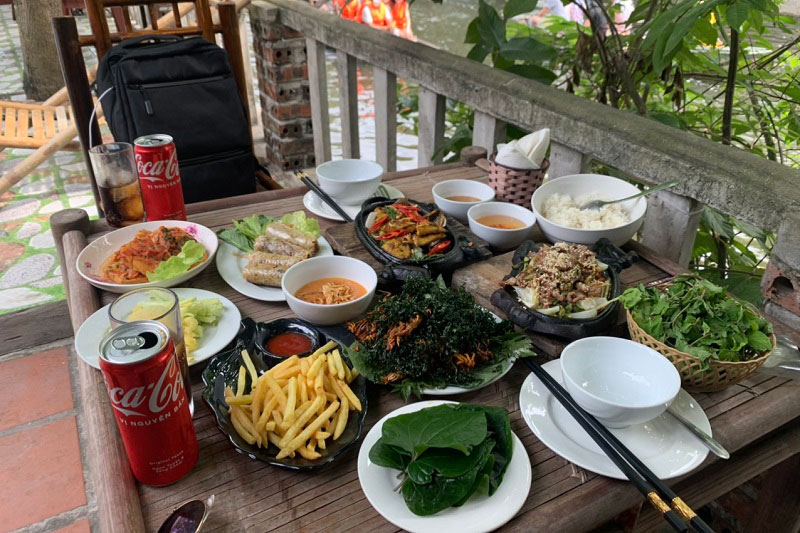 11:00: Have lunch in the restaurant with a lot of local foods such as goat meat, fish, chicken, fried rice…. Vegetarian foods are always available in the buffet lunch